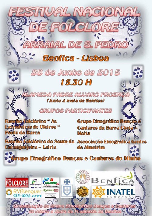 O arraial é feito a S. Pedro e a festa é organizada pelas gentes do Minho. O Grupo Etnográfico Danças e Cantares do Minho, um dos mais antigos e representativos agrupamentos folclóricos minhotos na região de Lisboa, leva a efeito no próximo dia 28 de junho, em Benfica, o “Arraial de São Pedro”. A iniciativa conta com o apoio da Junta de Freguesia de Benfica e vai ter lugar na Alameda Padre Álvaro Proença, junto à mata de Benfica.