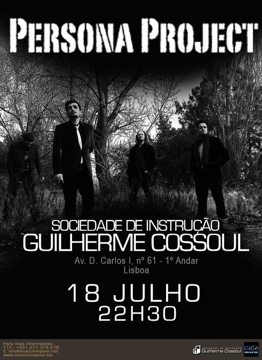 A Sociedade de Instrução Guilherme Cossoul é o palco do próximo concerto dos Persona Project, sábado, dia 18 de julho, às 22h30. O espetáculo desta banda lisboeta é caracterizado por uma forte componente visual, através de imagens projetadas que acompanham a atmosfera sonora. O álbum de estreia dos Persona Project, “Behind the shadow and the ghost”, foi editado em maio pela Music In My Soul, trabalho do qual “Please” é o single de apresentação.