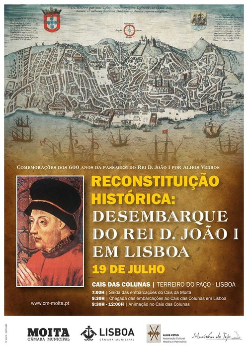 A Câmara Municipal da Moita e a Associação Cultural História e Património Alius Vetus, em colaboração com a Marinha do Tejo e com a Câmara Municipal de Lisboa, entre outras entidades, vão reconstituir o desembarque do Rei D. João I, em Lisboa. O Rei, acompanhado pelo seu filho bastardo, D. Afonso, parte do Cais da Moita, no dia 19 de julho, às 7:00h, no varino municipal “O Boa Viagem”. A recriação histórica decorre, no Cais das Colunas, em Lisboa, entre as 9:30h e as 12:00h.