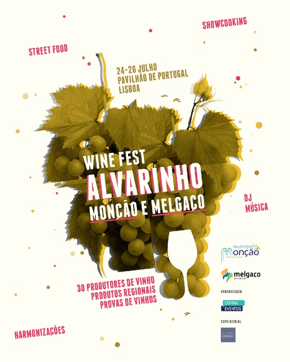 Os Municípios de Monção e Melgaço, em parceria com a “Cofina Media”, organizam, nos dias 24, 25 e 26 de julho, o “Alvarinho Wine Fest Monção/Melgaço”. O evento decorre sob a pala do pavilhão de Portugal, no Parque das Nações, em Lisboa. A entrada é 5 euros.