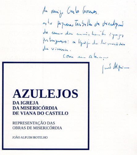Na Nota Introdutória, assinada por Manuel Gomes Afonso, Provedor da Santa Casa da Misericórdia de Viana do Castelo, refere-se o seguinte: “Em boa hora beneficiou esta igreja de obras de conservação e restauro. Ao conjunto azulejar de Policarpo de Oliveira, cuja assinatura deixou gravada num dos azulejos, foi dedicado especial cuidado. O mérito deste trabalho de recuperação, um decisivo contributo para salvaguarda e preservação de um património de que nos podemos orgulhar, tem merecido o devido reconhecimento e a atestá-lo, ainda recentemente, a atribuição do Prémio SOS Azulejo com que foi distinguido pelo Museu da Polícia Judiciária. Por isso, é de inegável oportunidade e a todos os títulos bem-vinda a edição desta obra do Dr. João Alpuim Botelho, profundo conhecedor do património da Santa Casa da Misericórdia de Viana do Castelo.