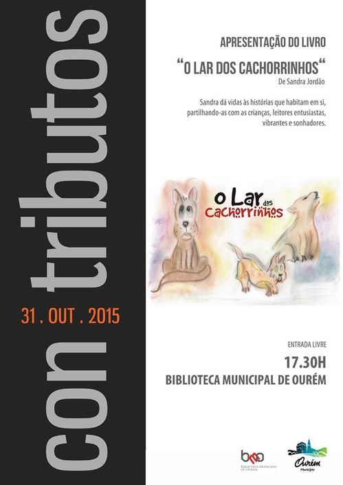 A Folheto Edições apresenta o livro infantil “O LAR DOS CACHORRINHOS”, da autoria de Sandra Jordão, em sessão que terá lugar na Biblioteca Municipal de Ourém, no dia 31 de Outubro de 2015 (sábado), pelas 17:30 horas. A apresentação do livro será da responsabilidade de Adélio Amaro e haverá um momento de conto com Sandra Jordão que dá vida às histórias que habitam em si, partilhando-as com as crianças, leitores entusiastas, vibrantes e sonhadores.