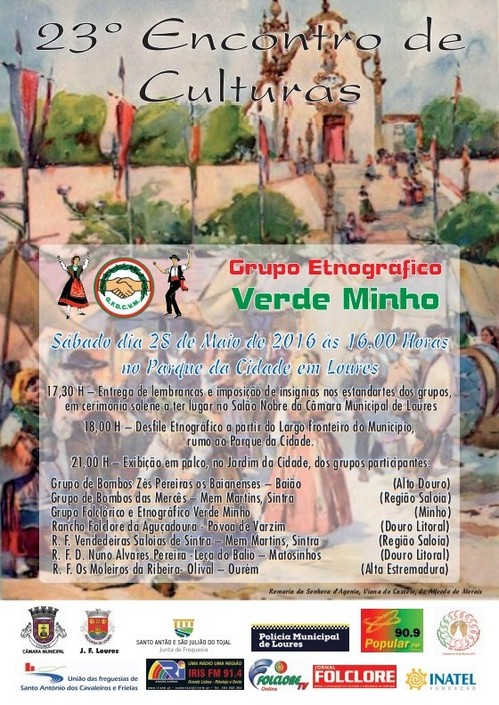 O Rancho Folclórico e Etnográfico “Verde Minho”, leva a efeito no próximo dia 28 de Maio, na cidade de Loures, mais uma grandiosa edição do Encontro de Culturas Verde Minho.