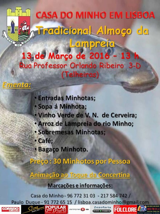 13:00 - Almoço de convívio em celebração ao aniversário do grupo. A ementa será Feijoada à Minhota.