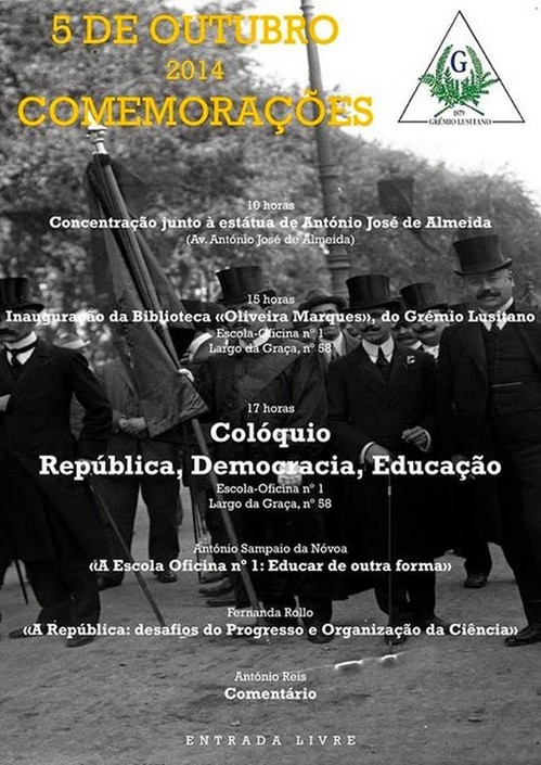 15.00 Horas – Inauguração da Biblioteca “Oliveira Marques”, do Grande Oriente Lusitano, nas instalações da Escola- Oficina nº1 ao Largo da Graça, nº58;