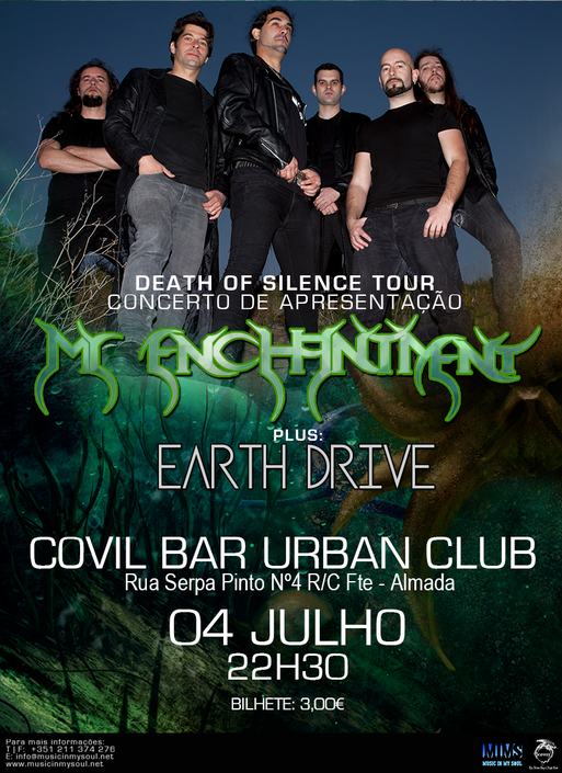 Os My Enchantment apresentam oficialmente “The Death of Silence” no próximo sábado, dia 4 de julho, no Covil Bar Urban Club, em Almada, pelas 22h30. O EP da banda foi reeditado no passado dia 1 de junho em formato CD, depois de ter ficado disponível nas principais lojas digitais a 15 de maio. “The Fallen” é o single de apresentação deste trabalho, que tem o selo da Music In My Soul. A abertura do concerto estará a cargo dos Earth Drive, do Montijo, que continuam a promover o EP “Known By The Ancients ”, editado em janeiro deste ano.