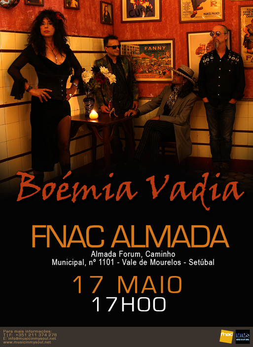 O single “Humanofobia” da Boémia Vadia, que estreou no passado dia 8 de maio, vai poder ser ouvido em primeira mão na FNAC do Almada Fórum já no próximo domingo, dia 17 de maio, às 17h00. O showcase servirá para a banda apresentar alguns temas daquele que será o seu primeiro EP, a ser editado pela Music In My Soul.