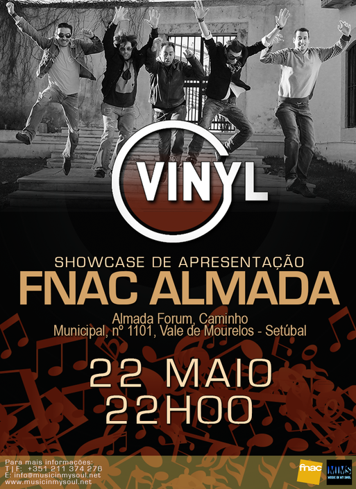 Os Vinyl vão estar no palco da FNAC do Almada Fórum já na próxima sexta-feira, dia 22 de maio, às 22h00. O showcase servirá para a banda almadense apresentar o seu EP homónimo, editado pela Music In My Soul em fevereiro. “Anjo Meu (Laura)” é o single de apresentação deste primeiro trabalho.