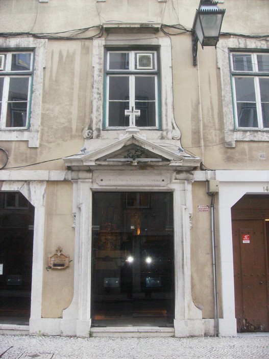A sinalética ao lado da imagem da santa não parece muito adequada e até desnecessária porque não existe no local qualquer extintor como se pode ver na foto... de resto, os extintores devem situar-se junto à porta de saída! Do lado esquerdo, a parede foi rasgada e a pintura marmórea destruída para enterrar o cabo eléctrico do sistema de alarme.