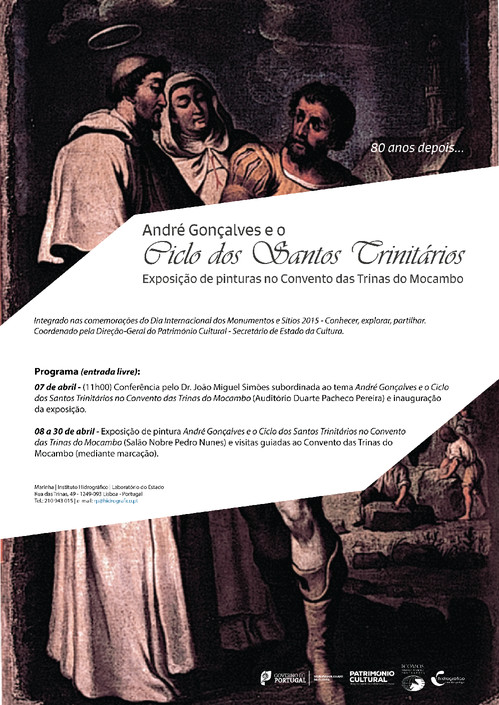 Inserido no âmbito das comemorações do Dia Internacional dos Monumentos e Sítios, o Instituto Hidrográfico realiza uma Exposição subordinada ao tema “André Gonçalves e o Ciclo dos Santos Trinitários no Convento das Trinas do Mocambo”, através da qual dá a conhecer um conjunto de treze importantes pinturas do barroco português, parte das quais exibindo as magníficas molduras em talha dourada.