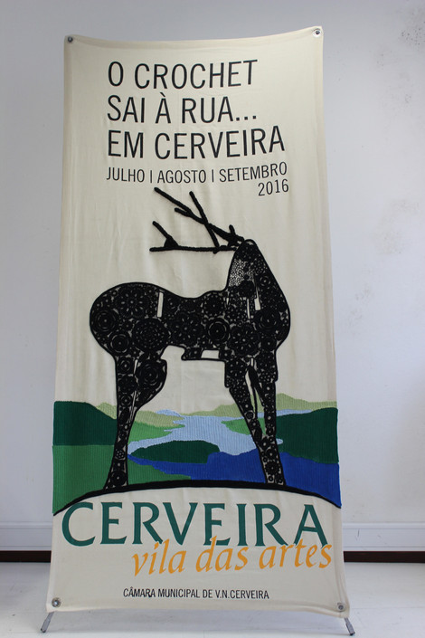 - logotipo de 'Cerveira - Vila das Artes' em crochet