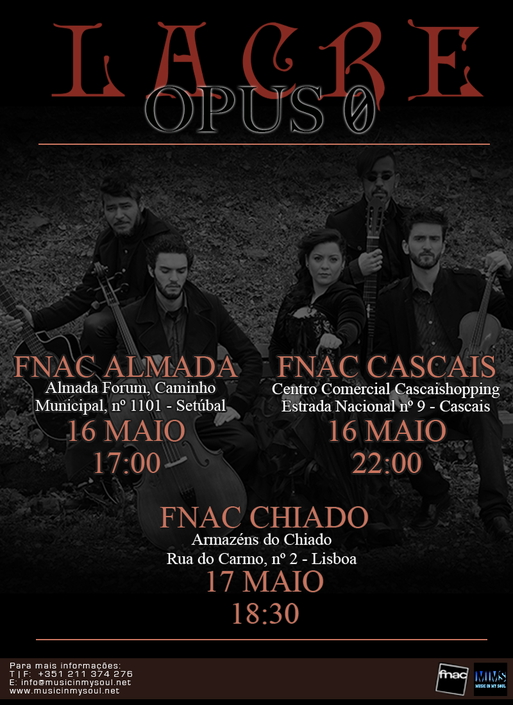 É com o primeiro álbum “Opus 0”, produzido por António Pinheiro da Silva, que esta banda se apresenta. Nascidos em janeiro de 2012, os Lacre editaram o seu primeiro trabalho um ano e meio mais tarde e foram vários os concertos desde então. Em fevereiro de 2014, foi lançado o primeiro videoclipe do tema “Ode aDeus”, realizado por Rui Pilão e com a direção de fotografia de António Morais. A música, misturada com o ambiente sereno, revela um espetáculo cheio de inspiração e emoção.